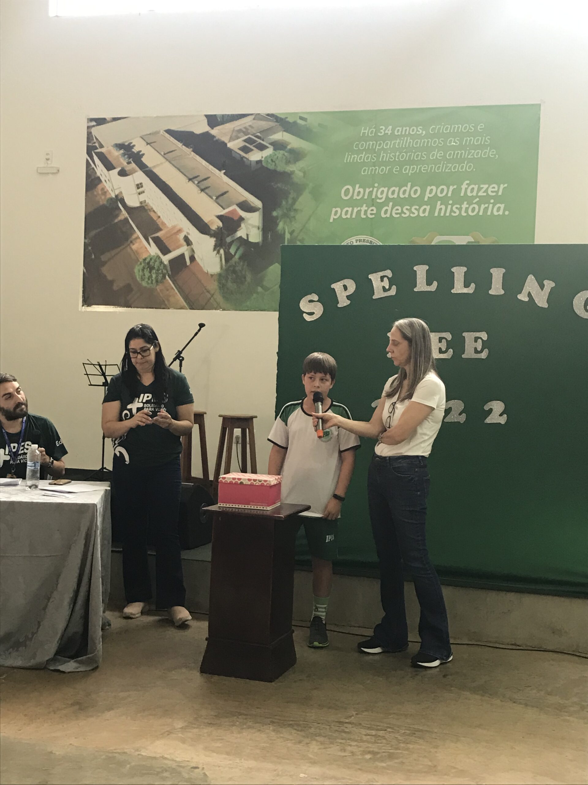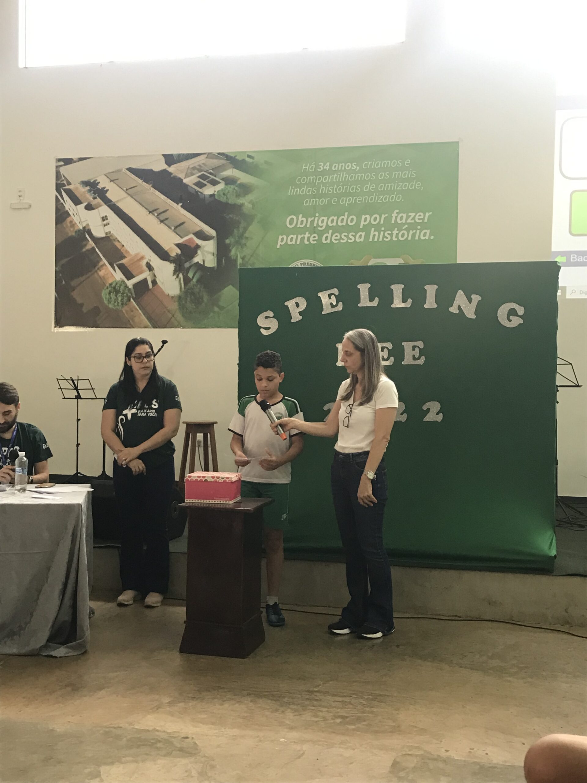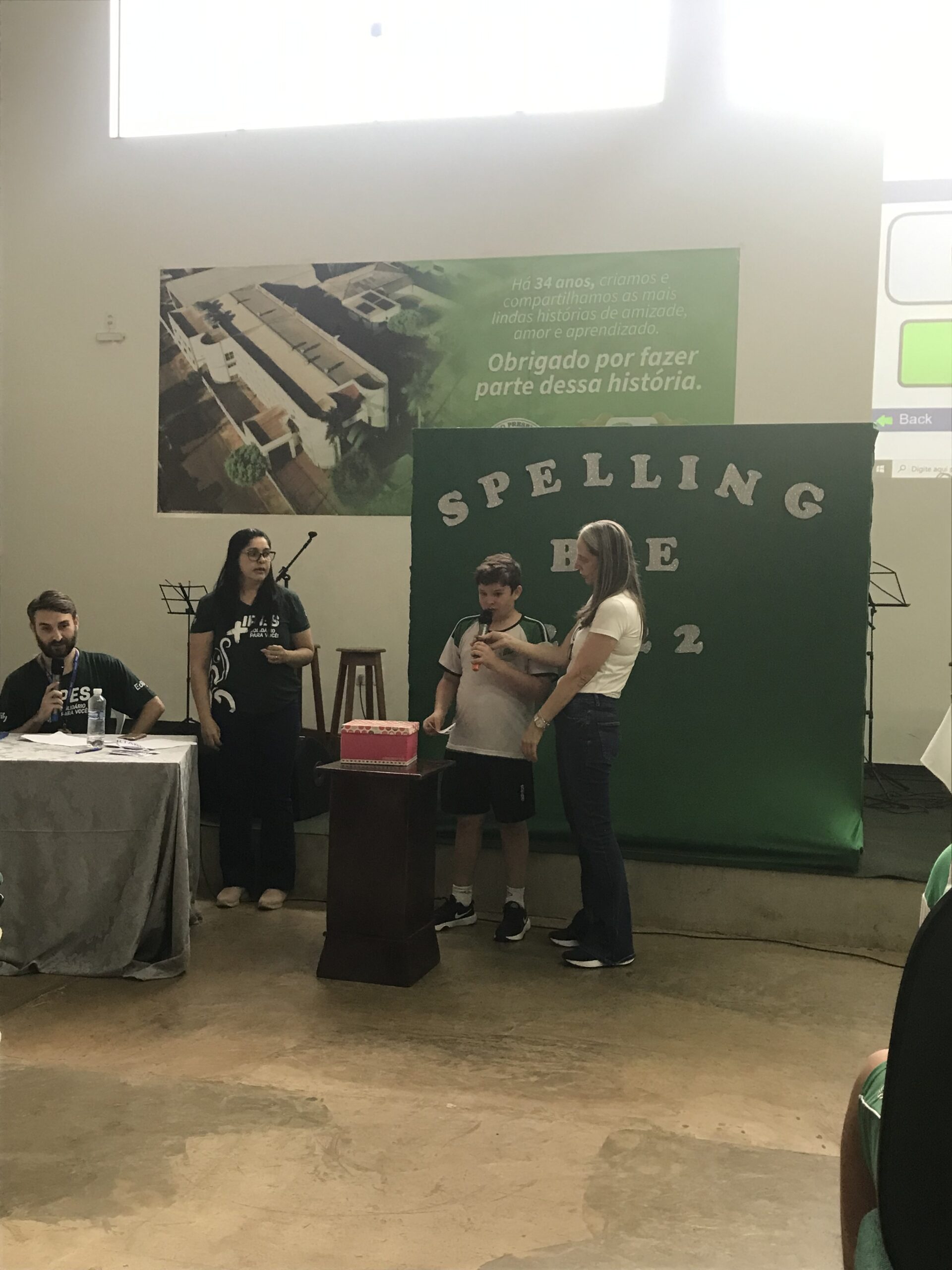 Na tarde de ontem, tivemos a final SPELLING BEE, concurso de soletração em inglês realizado com os alunos dos 5ºs anos. Foi uma disputa acirrada. Os dez finalistas estavam muito bem preparados para a prova. Foi uma tarde de muita animação e torcida. Além dos alunos, vários pais estiveram presentes. Após várias rodadas, chegamos às três primeiras colocações…