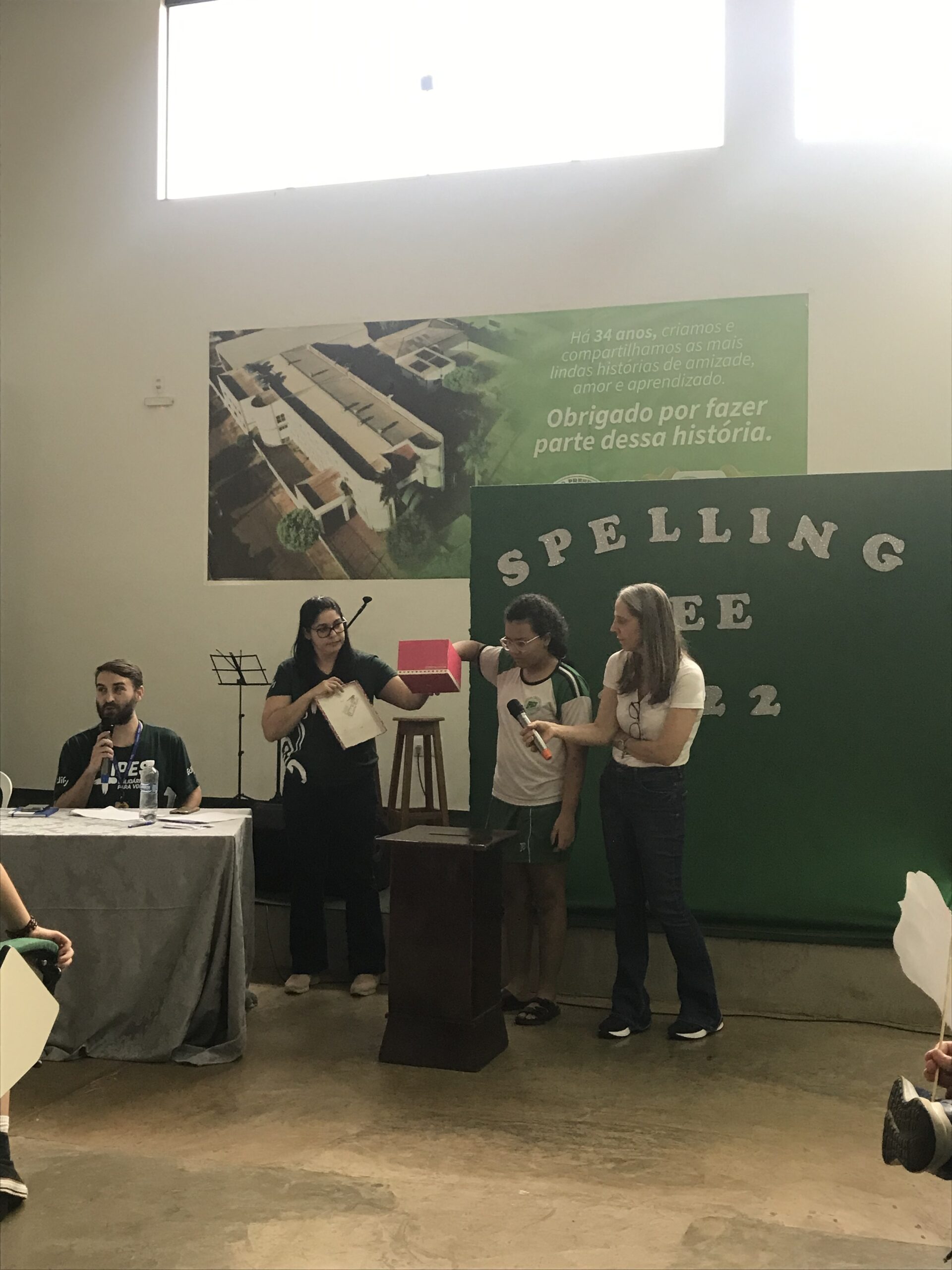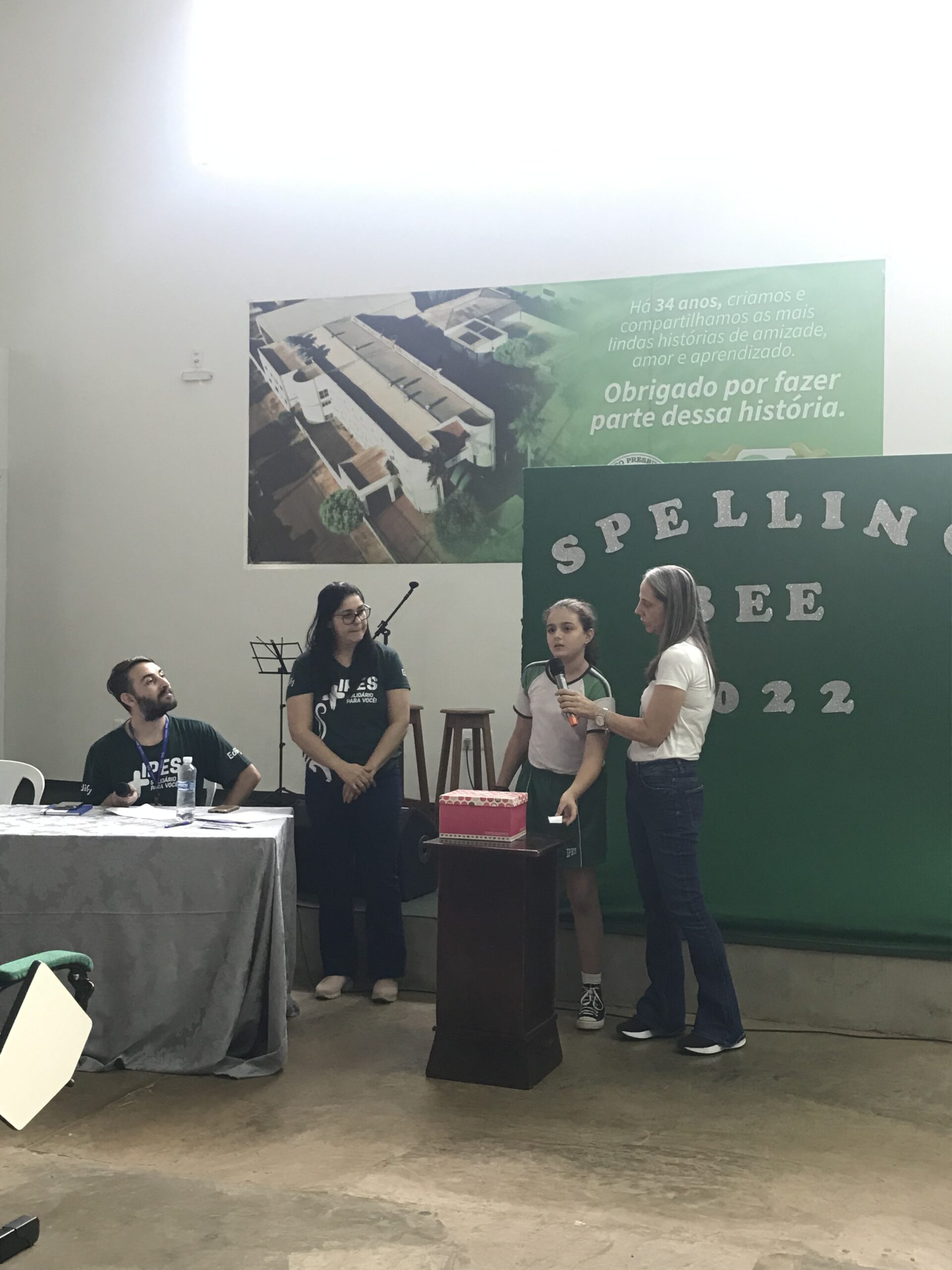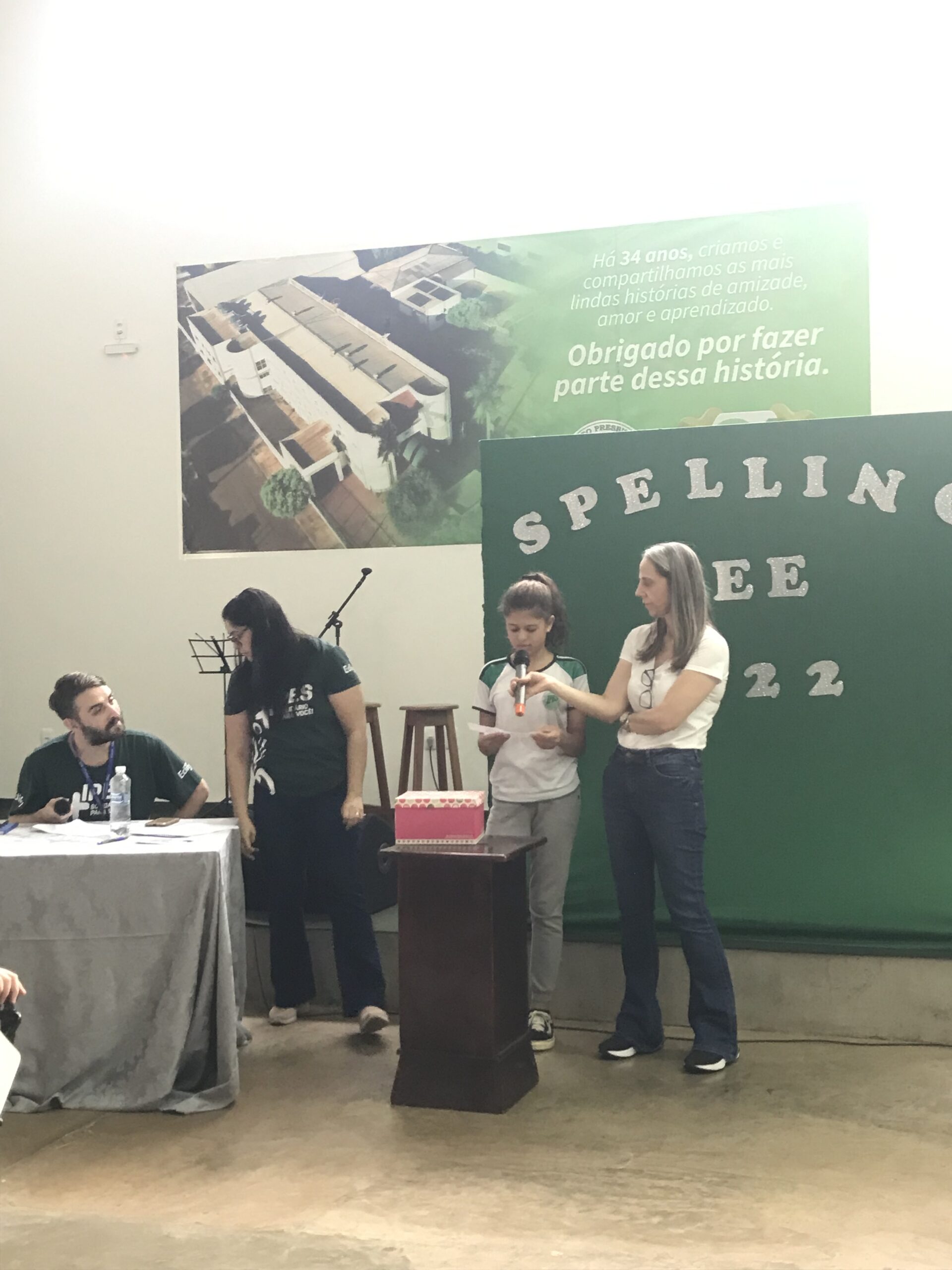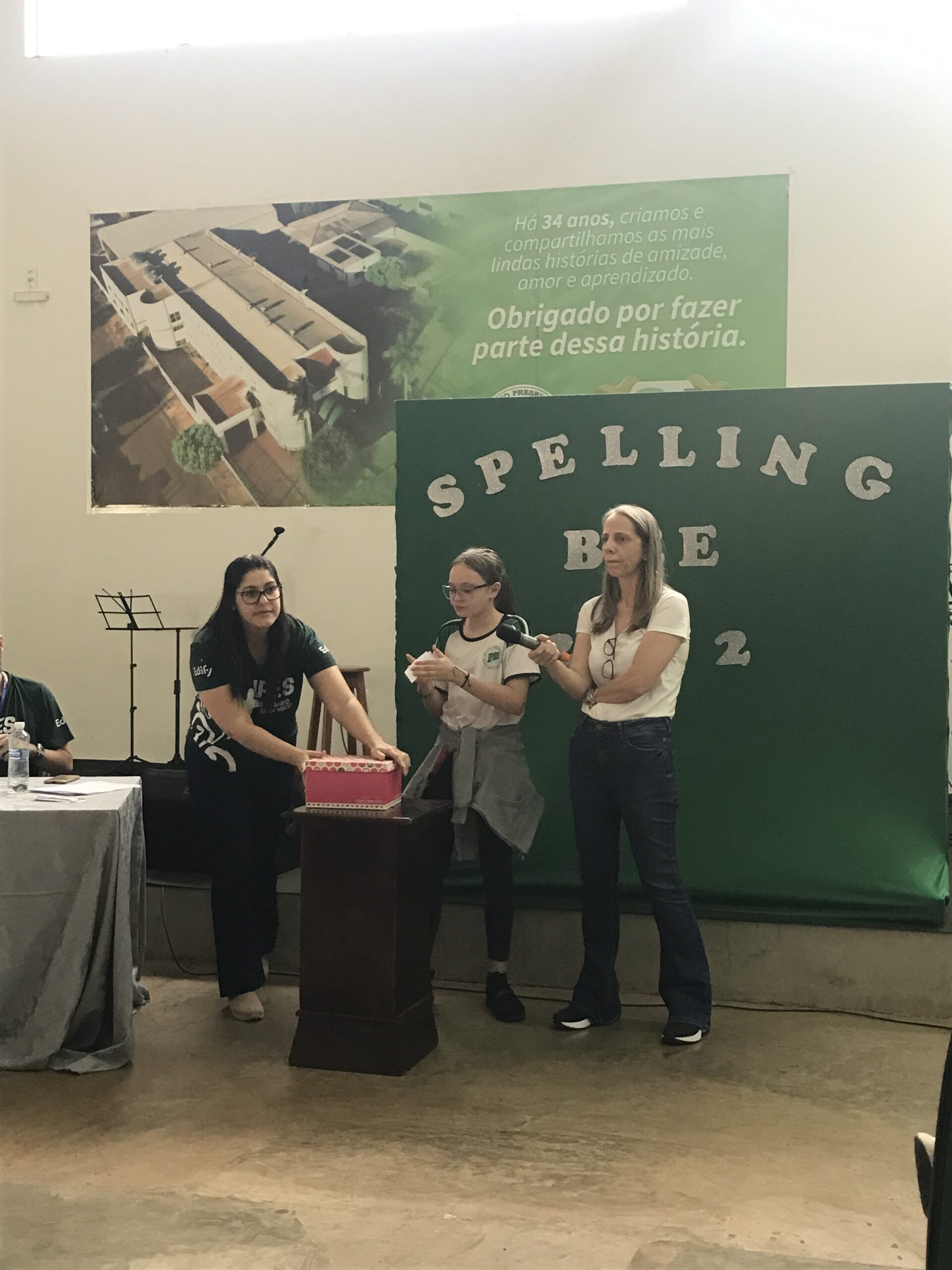 Na tarde de ontem, tivemos a final SPELLING BEE, concurso de soletração em inglês realizado com os alunos dos 5ºs anos. Foi uma disputa acirrada. Os dez finalistas estavam muito bem preparados para a prova. Foi uma tarde de muita animação e torcida. Além dos alunos, vários pais estiveram presentes. Após várias rodadas, chegamos às três primeiras colocações…